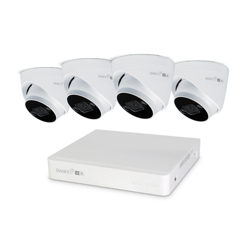 Enhance your business security with the Swann AdvancedX™ Wired 8 Channel NVR system and 4 Dome Camera Kit, delivering 3K clarity for detailed surveillance. Experience superior color night vision with integrated spotlights for clear footage up to 82ft/25m in darkness.