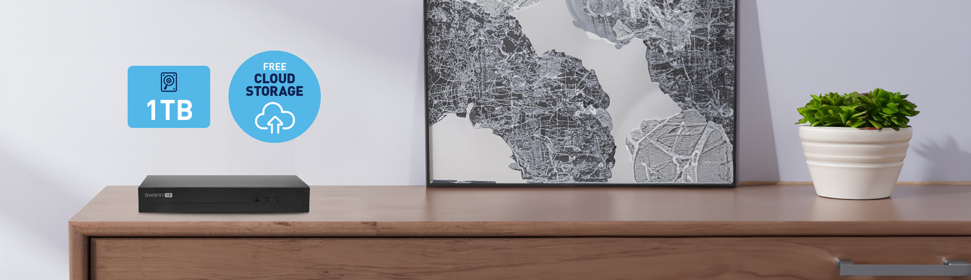 Retain up to 6 months of footage on a 1TB hard drive and back up to the cloud.+