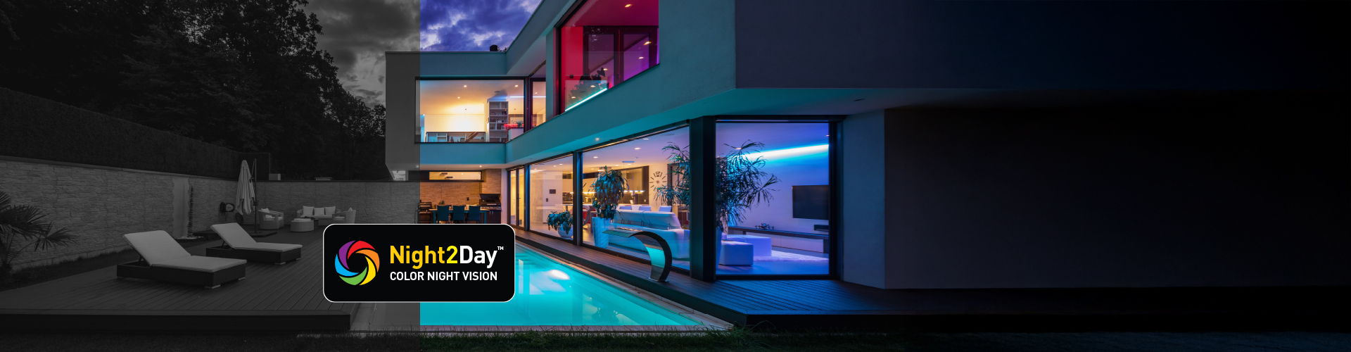 See vibrant color video at night up to 50ft/15m with Night2Day™ and black and white up to 100ft/30m.#