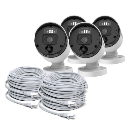 4 x Add-on Bullet Cameras with 6K Mega HD Video, 2-Way Audio, Video Analytics, Controllable Flashing Lights, Spotlights & Siren