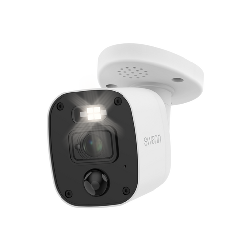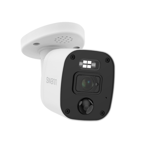 Enhance your security system with Swann’s 4K Ultra HD Bullet Camera. This camera offers sharp 4K resolution, True Detect™ heat and motion-sensing technology, and Night2Day™ color night vision. Equipped with a built-in siren, sensor warning lights, and a microphone for audio recording, it provides comprehensive security. Its weatherproof design ensures durability for outdoor use. The camera is compatible with Swann DVR systems and can be managed via the Swann Security App for remote access.