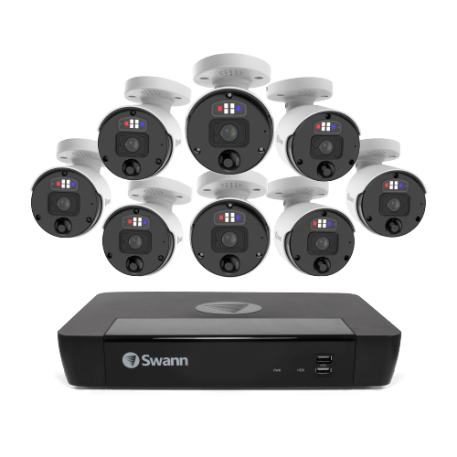 Upgrade your security with Swann’s 8 Camera 8 Channel 4K Ultra HD Professional NVR Security System. Offering crystal clear 4K resolution, this system ensures detailed surveillance. Equipped with True Detect™ technology for accurate heat and motion detection, Night2Day™ color night vision, and two-way audio, it provides comprehensive protection. The system includes spotlight cameras, sirens, and sensor warning lights for enhanced deterrence, and the 2TB HDD offers ample storage. Manage and access footage remotely via the Swann Security App.