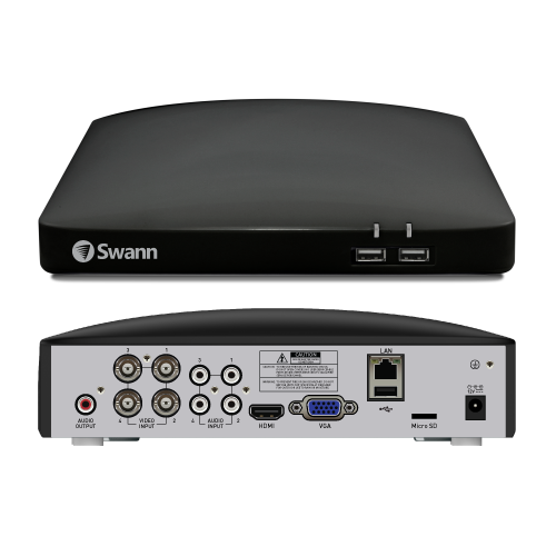 Contains DVR-4685 with Pre-installed 64GB MicroSD Card & 4 x PRO-1080MQB SwannForce Bullet Cameras