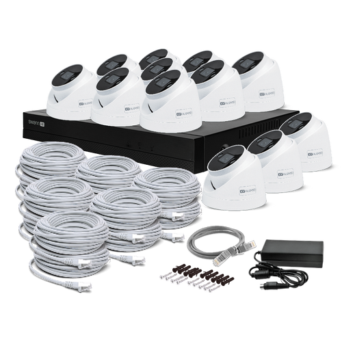 16 Channel NVR with 2TB Hard Drive NHD-ADVANCXD Cameras with Spotlights x 12 Ethernet Cable x 13 (60ft/18m x 12, 3ft/1m x 1) Power Adapter Mounting Screws & Hardware Operating Instructions