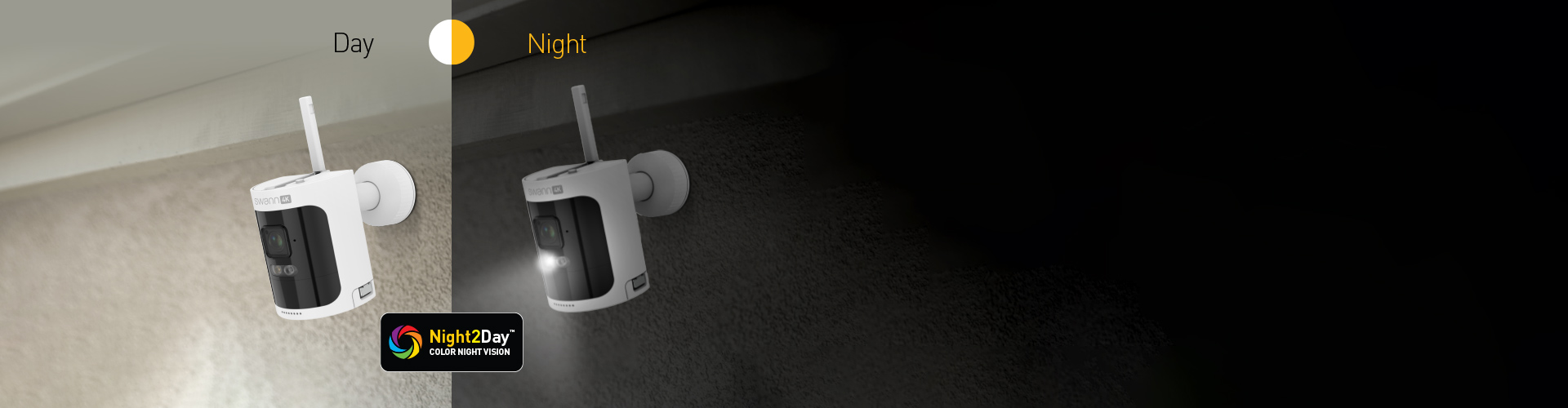 Get color video at night up to 32ft (10m) with the lights on & even longer, up to 100ft (30m), in black & white during total darkness.