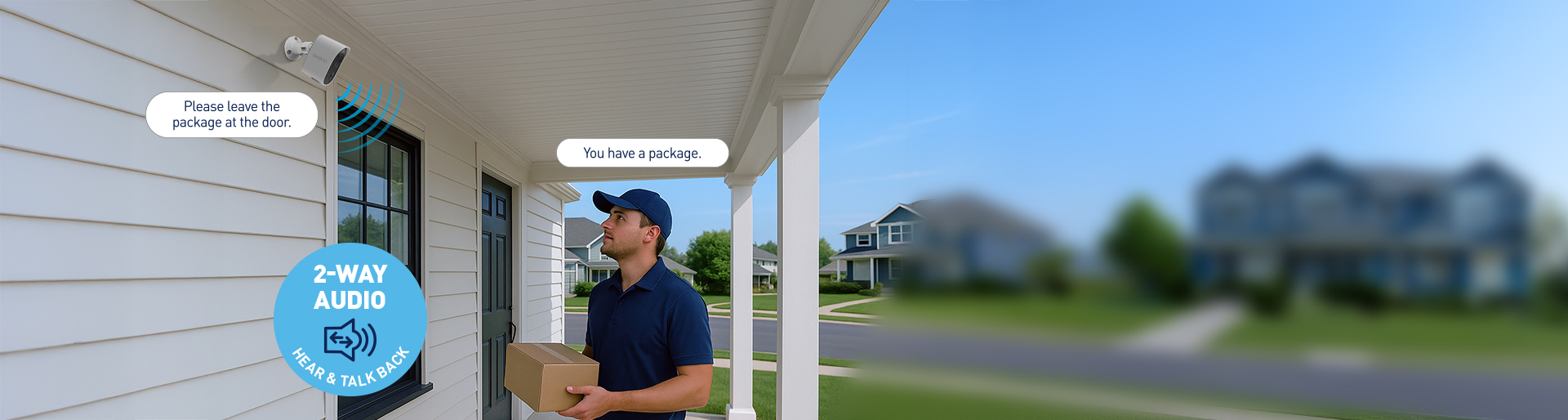Stay connected to your home with built-in two-way audio, deter unwanted guests or speak to visitors when you are not around with the ability to speak & listen through the camera in real time.