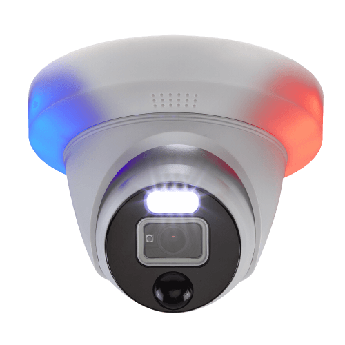 Red & Blue flashing lights deter intruders plus spotlights, siren & mobile alerts leave nowhere to hide.
