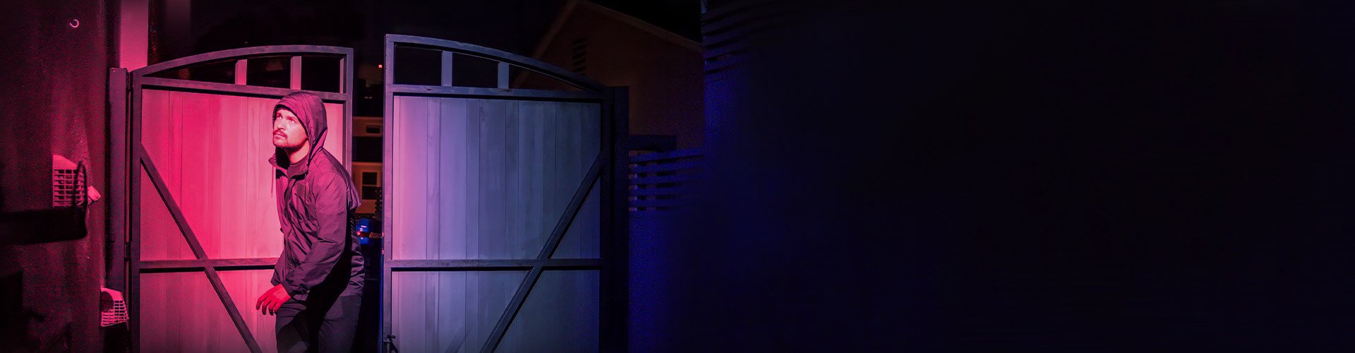 Red & Blue flashing lights deter intruders plus spotlights, siren & mobile alerts leave nowhere to hide.