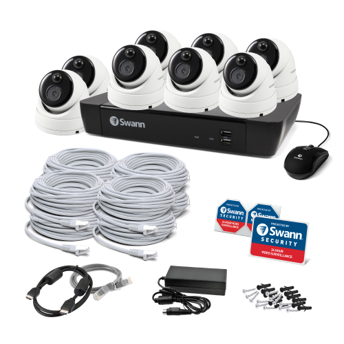 With the latest surveillance tech such as color night vision, sensor spotlights, motion detection recording & smartphone integration, the Swann Master-Series NVR security system is packed with features. See fine details essential for evidence with upscaling cameras that cleverly create a 4K display resolution with powerful digital zoom to watch over entrances, yards, driveways, parking lots, shop floors, storerooms & more. It’s security made smarter and fee free.