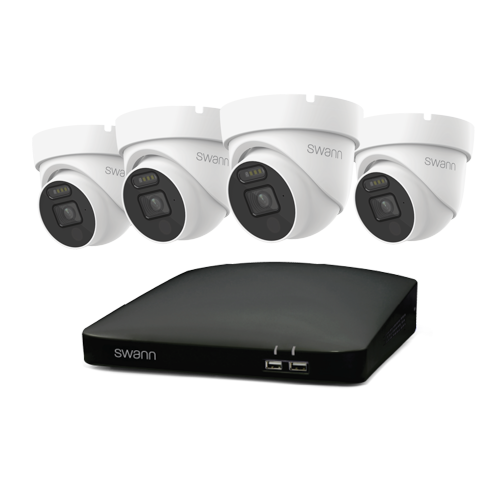 Protect your home with the Swann 4K DVR Security System with Dome cameras. Deter intruders with bright spotlights and enjoy crystal-clear 4K video with colour night vision. Advanced True Detect™ motion detection minimises false alarms while reliable wired connections ensure uninterrupted security. Store months of video locally and back up to the cloud – all with no monthly fees.
